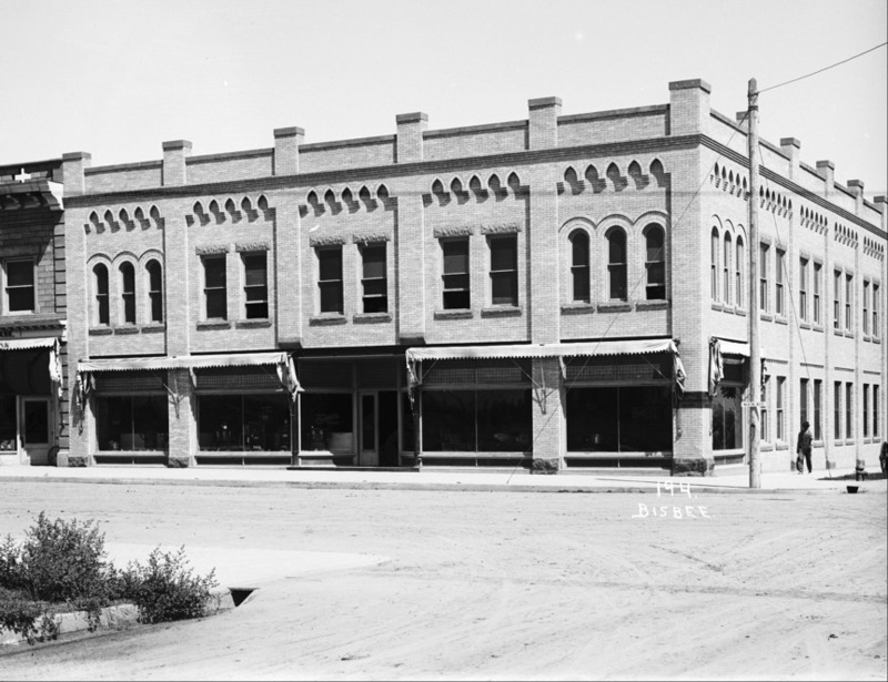 - Corner view of the Consolidated Wagon and Machine Company, a large masonry building. A man stands on the sidewalk next to the building. {The building is also known as the Cain's Furniture Store.}