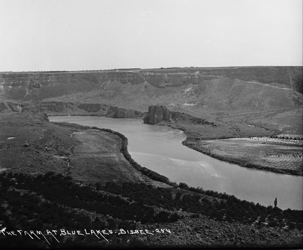 - "The Farm at Blue Lakes;" view from the north rim, above the I.B. Perrine Ranch, looking southeast. Perrine grade in the distance.