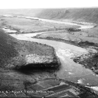 - "The Letter S - Auger Falls;" the Snake River curving through the canyon, Blue Lakes area in background