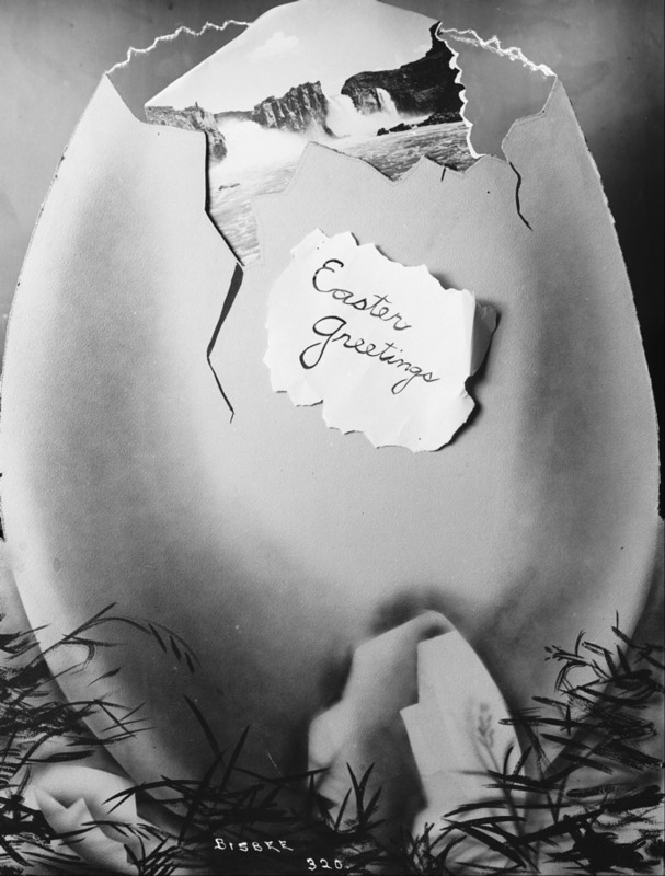 - "Easter Greetings;" photo of the Twin Falls waterfall at the top of a painted, cracked eggshell.