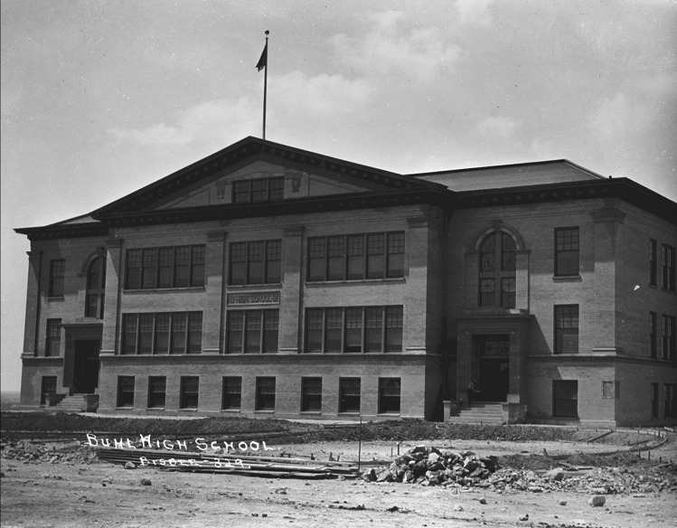 - "Buhl High School;" brick school building shortly after construction.