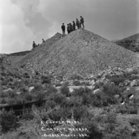- "A Copper Mine, Contact, Nevada;" several men stand on top of a large pile of mine tailings