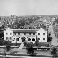 - Wide aerial view of west Twin Falls with the Justamere Inn in the foreground and Lincoln School in the background, residential house and buildings in between. Taken from atop the Twin Falls County Court House.