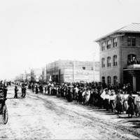 - "Buhl Day;" parade along Main Street, near Hotel Perrine. Other businesses and buildings visible include: First National Bank; McCornick Bank; Dentist; Perrine and Burton Merchandise