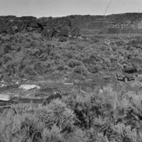 - An automobile (car) and camp trailer in the bottom of the Snake River canyon.