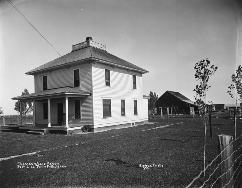 - "Thomas Woods Ranch, 3 1/2 miles east of Twin Falls, Idaho;" house, barn, and other buildings.