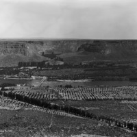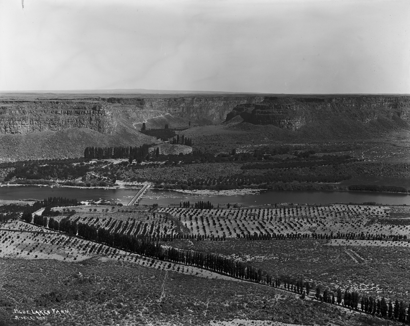 - "Blue Lakes Farm;" view from the south canyon rim of the Perrine farm land on the Snake River