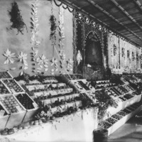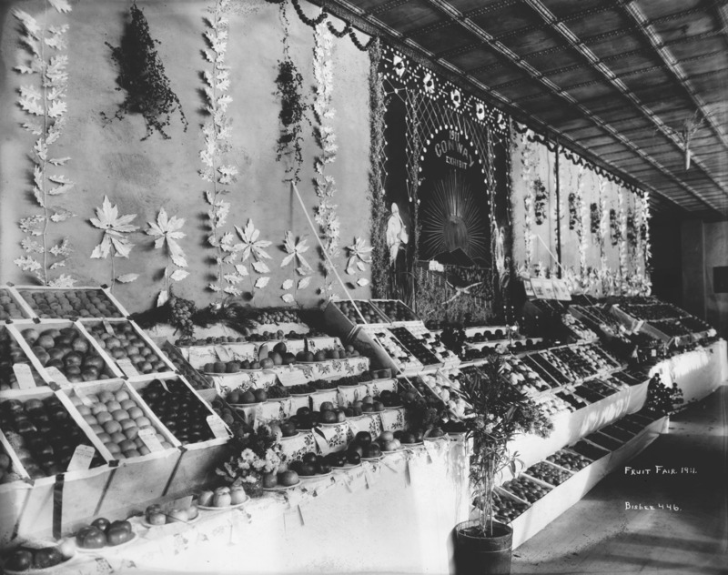 - "Fruit Fair, 1911;" room of displayed produce; one sign reads '1911 Conway Exhibit'