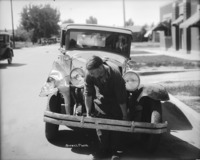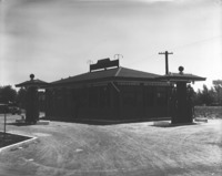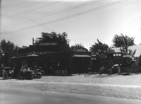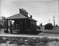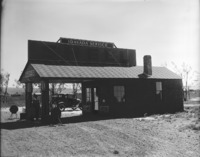 1402 Idavada Service Station; a small building with an automobile (car) nearby.