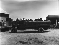 1405 Gasoline delivery truck, with a man posing alongside.