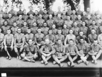 1411 Company A, 62nd Infantry; August 1918; A group of men in military uniform; section 3 of 4 of a larger photograph that was broken into smaller photographs by Bisbee. Original photo was taken by J. D Givens; Menlo Park, CA