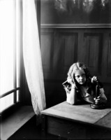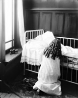 1313 A child (girl) at prayers beside crib. Christmas Theme Photoshoot