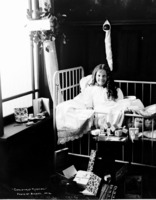 1315 "Christmas Morning"; a child (girl) sitting in a crib. Christmas Theme Photoshoot