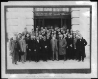 1307 Merchants and Manufacturing Association.; a group of men before a building. Taken after first luncheon on March 6, 1911.