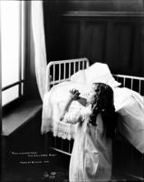 1317 "God Listens When Children Pray"; a child (girl) at prayer by a crib. Christmas Theme Photoshoot