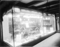 1248 A window display, with a model of an Oregon Short Line Railroad engine.
