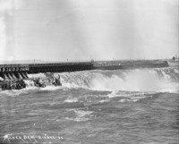 PC-2070 "Milner Dam;" water flowing over the head gates.