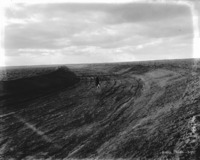 S 031 A man in a two-horse buggy stops on a berm beside a dry canal. Gates are in background.