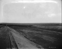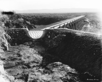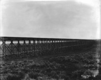 S 014 An elevated canal flume crosses a depression in the sage brush plain.