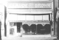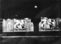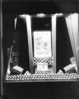 GB 082 Display in store windows showing women's clothing and accessories. A sign in one of the windows reads, "Spring Opening 1930."