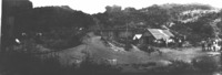 C 019 "Milner Dam;" panoramic view of the Milner Dam headgates and flow into river; Milner Inn in background at right.