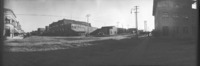 C 009 Panoramic view of the intersection of Main Ave and Shoshone St; businesses and buildings visible include Eldridge's Clothing Store; First National Bank; Twin Falls Hardware Co., Young's Grocery and Seed House