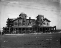 B 131 "The North Side Inn As It Once Looked; Jerome, Idaho;" view of construction on the Inn, three men stand on the very left