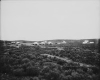 B 142 "Tenting Tonight on the North Side Tract;" several canvas tents and a few wood frame buildings nestle among the sage brush
