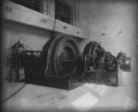 B 143 "Head Gates, North Side;" a man stands on a rock wall leading to several canal gates