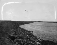 B 114 "Rip Rap Work, Main Canal. North Side;" loose rocks line the canal