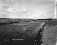 B 104 "Opening a New Section of Main Canal, North Side; a crew of men with shovels work on the canal bed; a team of horses on right