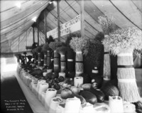 B 092 "Tri-County Fair; October 1,2,3, 1913; Jerome, Idaho;" produce display in a large tent