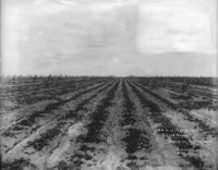B 030 "Apple Orchard, Near Barrymore, Idaho;" a man stands among new trees in an orchard southeast of Jerome