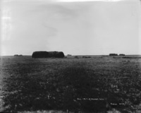 B 022 "One Year from Sage Brush. North Side" looking across a fenced field at a small farmstead, with house, barn, and other outbuildings