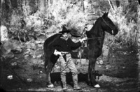 1996 A cowboy poses beside his horse