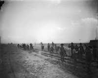 1963 Several men lying track as part of a railroad crew.