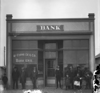 1957 Several people standing on the sidewalk in front of the McCornick and Company Bank Building.