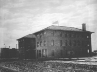 1875 Perrine Hotel, shortly after construction; looking southeast along a muddy Main Ave.