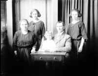 1856 Portrait of a family with one women, one man, and three girls.