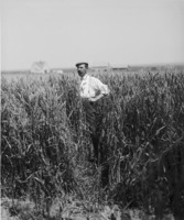 1824 Clarence Bisbee standing in a field of shoulder-high grain.