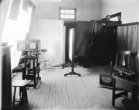 1652 Barrels and boxes of photographic chemicals in Bisbee's studio.