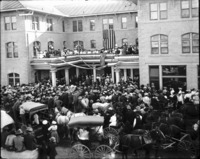 1575 A crowd of people listening to William Jennings Bryan speak at the Perrine Hotel, September 1907