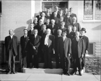 1577 "The First Meeting of the Synod of Idaho. Twin Falls, October 13, 1909;" group of men standing on the steps of the Presbyterian Church.