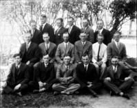 1433 A group of men in suits posed outdoors.