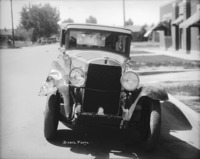 1429 A damaged automobile, with no front bumper.