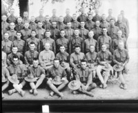 1418 Company A, 62nd Infantry; August 1918; A group of men in military uniform; section 2 of 4 of a larger photograph that was broken into smaller photographs by Bisbee. Original photo was taken by J. D Givens; Menlo Park, CA