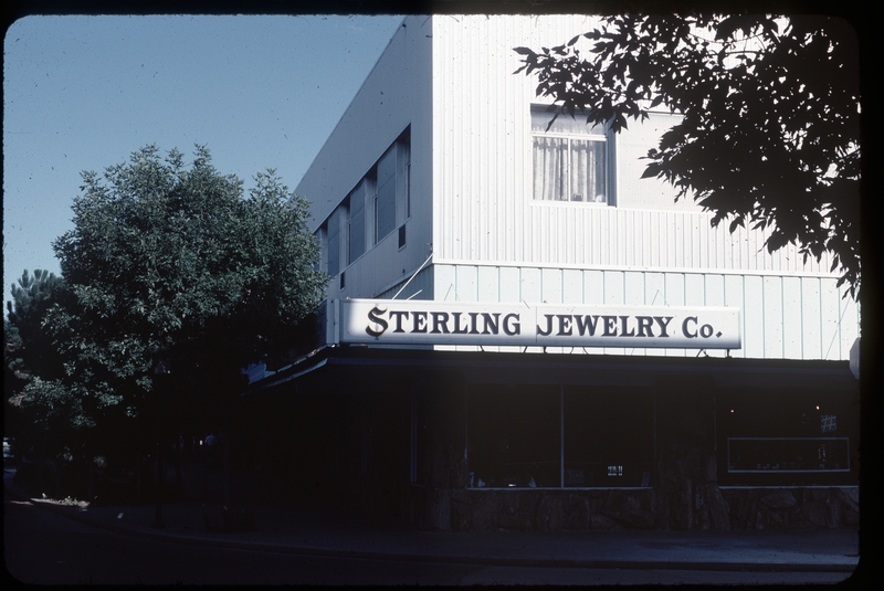 - Corner view of the Storefront of Sterling Jewelry, part of the Rogerson Hotel complex.