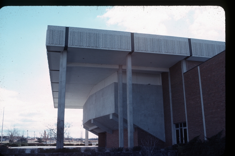 - View of the east side and front entrance of the Fine Arts building on the campus of the College of Southern Idaho (CSI).