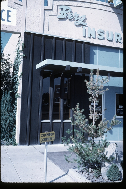 - View of entrance to Berg Insurance along Shoshone Street N. Twin Falls Chamber of Commerce is on left.