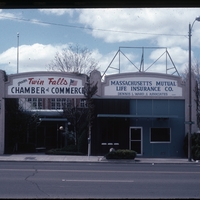 - Front view of Twin Falls Chamber of Commerce, which is set back from the Street with landscaping, and Massachusetts Mutual Life Insurance Co., Dennis L. Ward and Associates; along Shoshone Street N